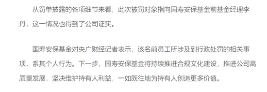 18日下午,国寿安保基金也回应了,说这是前员工李丹的个人行为,跟公司无关。公司会继续推进合规建设,维护基民利益(场面话还是要说的)。