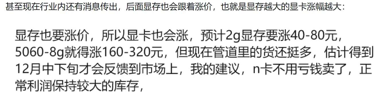 之前文章里曾一带而过,因为显存产能不够,显卡也会涨,当时预计反馈到市场行情上,要等到年末,最晚明年第一季度