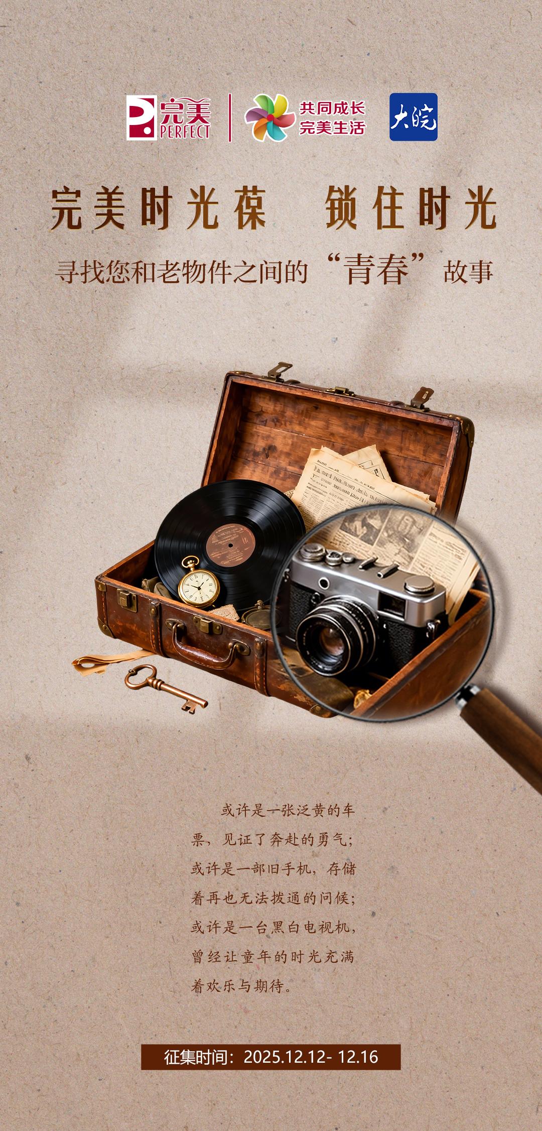 即日起途牛配资,完美(中国)有限公司安徽分公司与大皖新闻共同发起“完美时光葆 锁住时光——寻找您和老物件之间的‘青春’故事”征集活动。